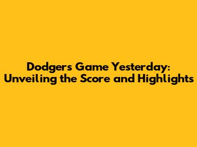 Alright, baseball fanatics! You're probably here because you, like many others, are buzzing with that all-important question: Did the Dodgers win their game yesterday? Well, you've landed in the right spot! We're diving deep into the Los Angeles Dodgers' recent performance, giving you the lowdown on their latest game. We'll be breaking down the score, key plays, and any stand-out moments that had us all on the edge of our seats. So, grab your favorite snack, settle in, and let's get into it. Whether you're a die-hard fan who never misses a pitch or someone just casually checking in, we've got you covered. We'll be serving up all the essential details in a way that's easy to digest, so you can stay informed and engaged. Plus, you’ll get some insights into what might be on the horizon for our boys in blue. So, without further ado, let’s get this show on the road! Ready to find out if the Dodgers brought home the victory? Let's get started!